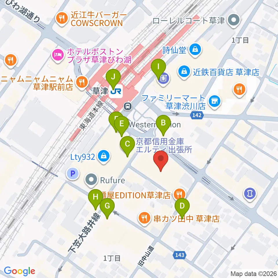 JEUGIAカルチャーセンター くさつ平和堂周辺のカフェ一覧地図