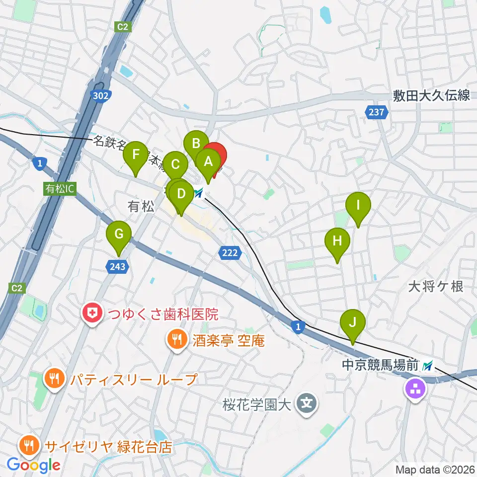 JEUGIAカルチャーセンター イオンタウン有松周辺のカフェ一覧地図