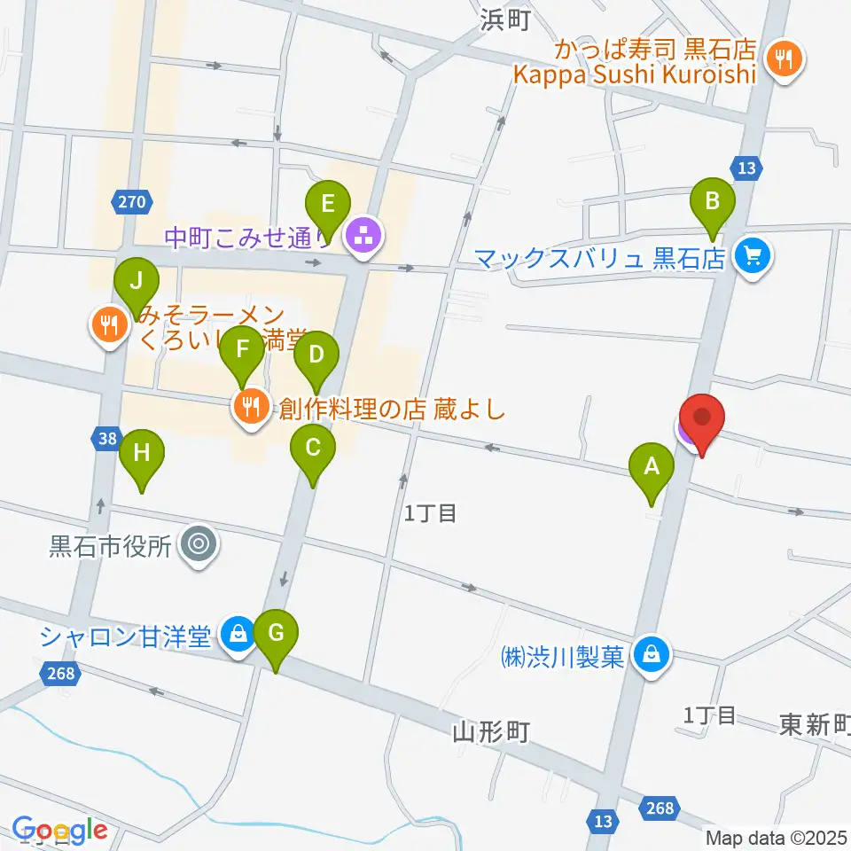 ゲオ黒石東町店周辺のカフェ一覧地図