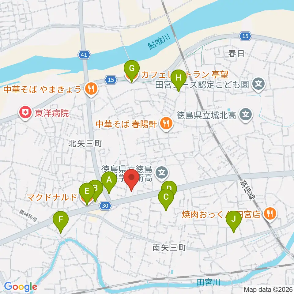 ゲオ徳島矢三店周辺のカフェ一覧地図