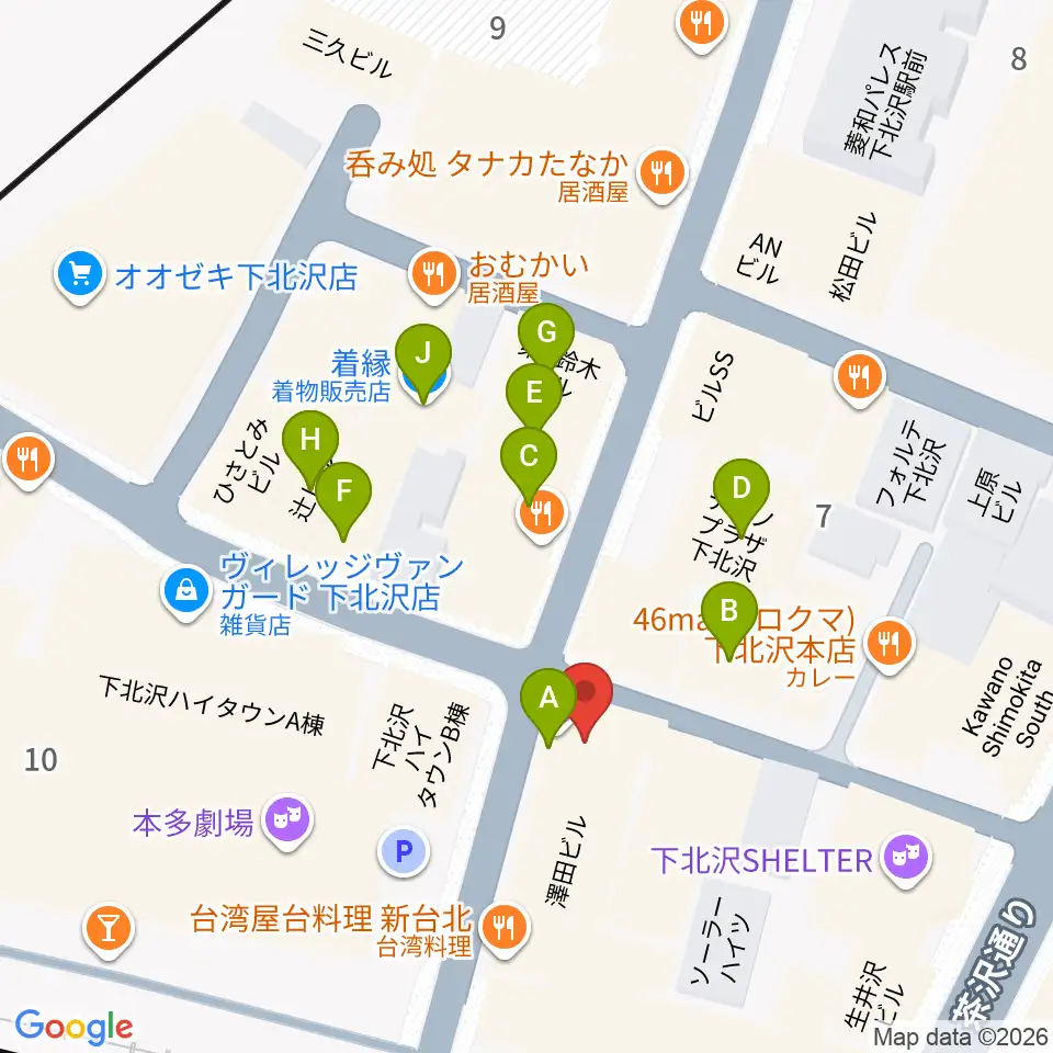 劇・小劇場周辺のカフェ一覧地図