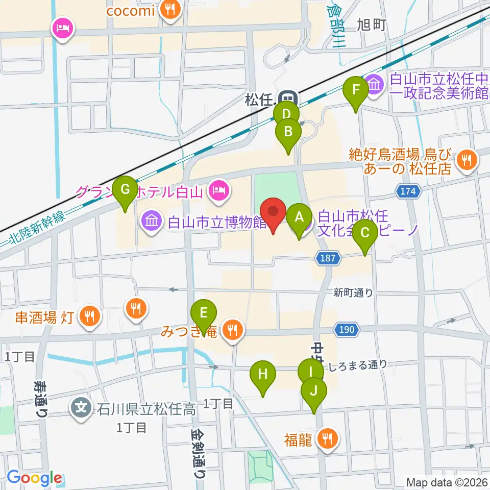 白山市松任文化会館ピーノ周辺のカフェ一覧地図