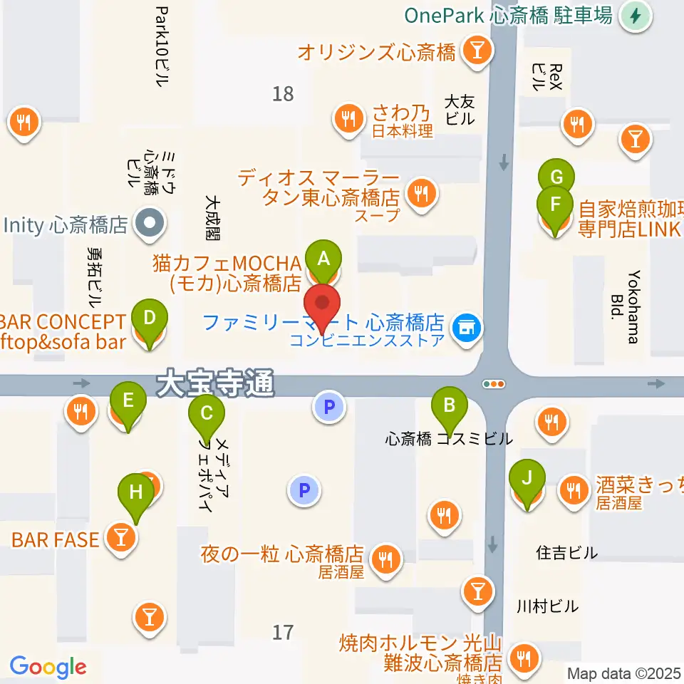 心斎橋FootRock&BEERS周辺のカフェ一覧地図