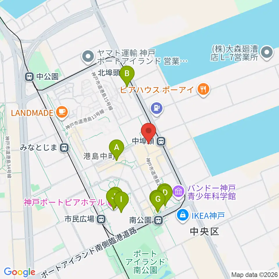 神戸ジーベックホール周辺のカフェ一覧地図