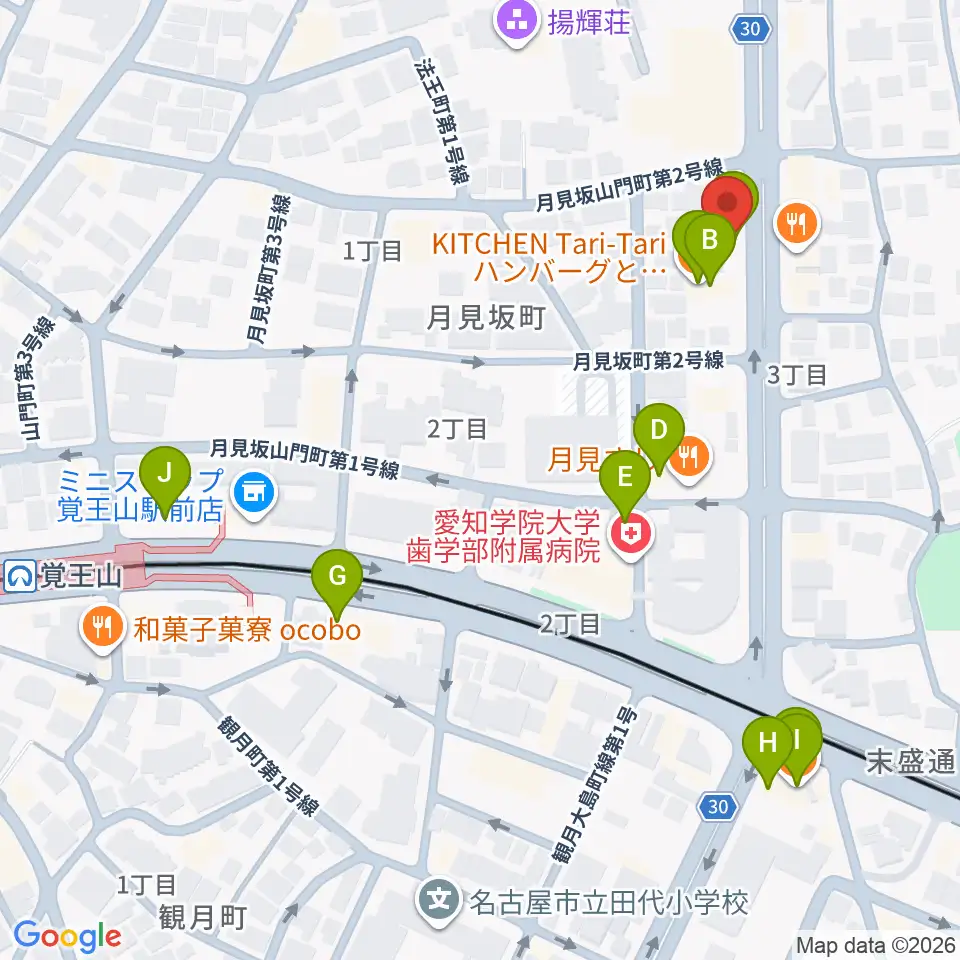 フィオーレ音楽教室周辺のカフェ一覧地図
