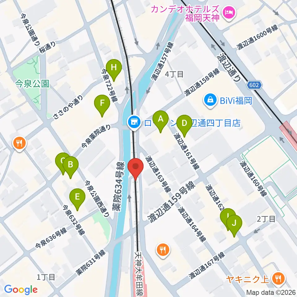 福岡薬院ビートステーション周辺のカフェ一覧地図