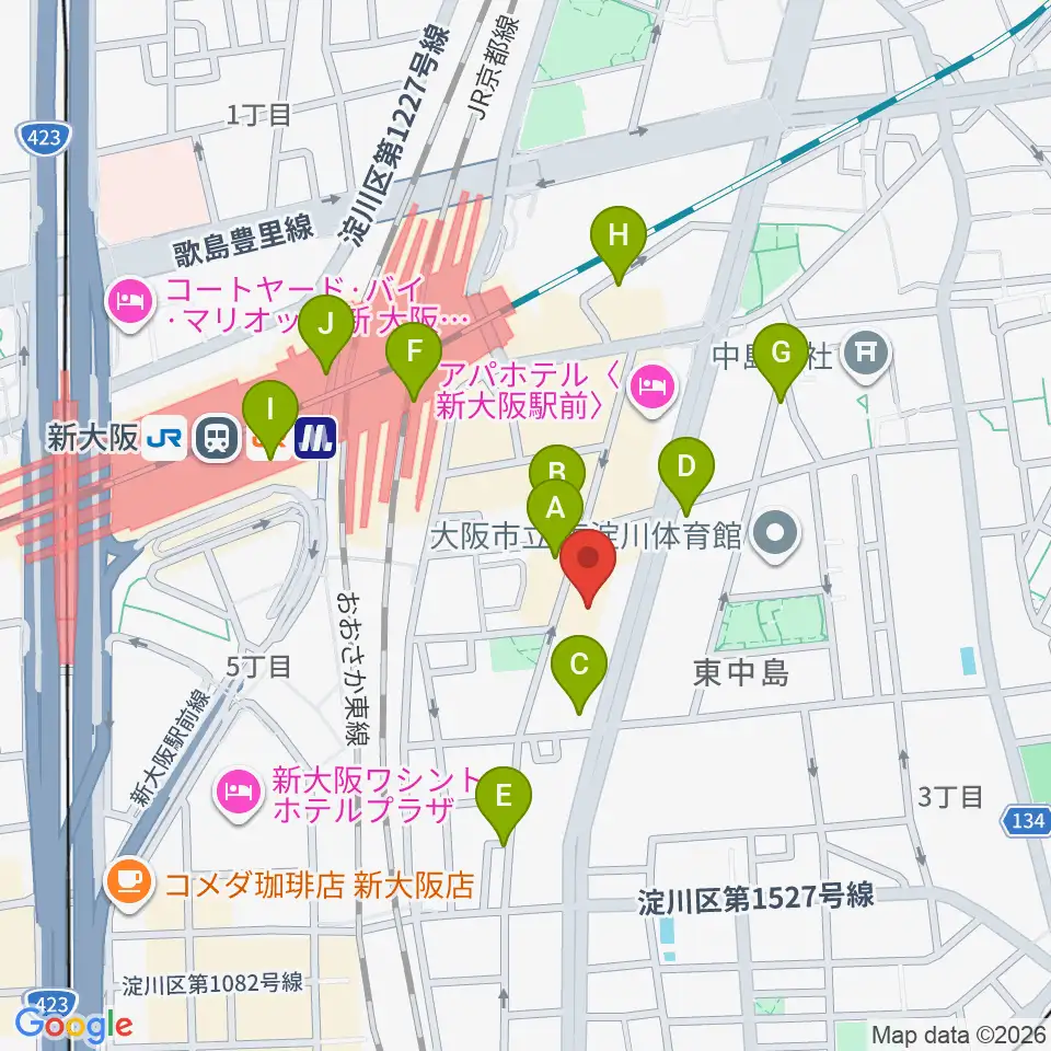 大阪市立青少年センター KOKOPLAZA周辺のカフェ一覧地図