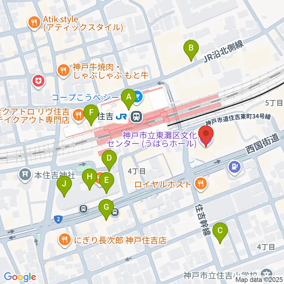 神戸市立東灘区文化センター周辺のカフェ一覧地図