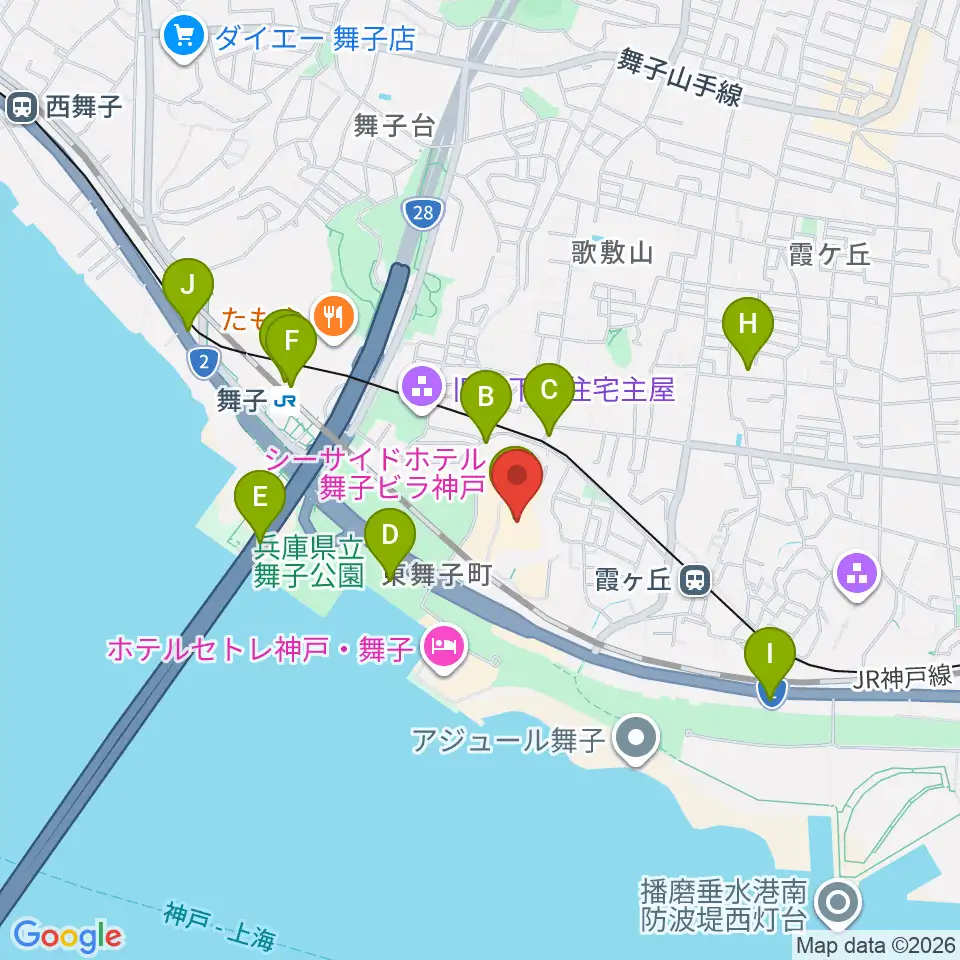 舞子ビラ神戸あじさいホール周辺のカフェ一覧地図