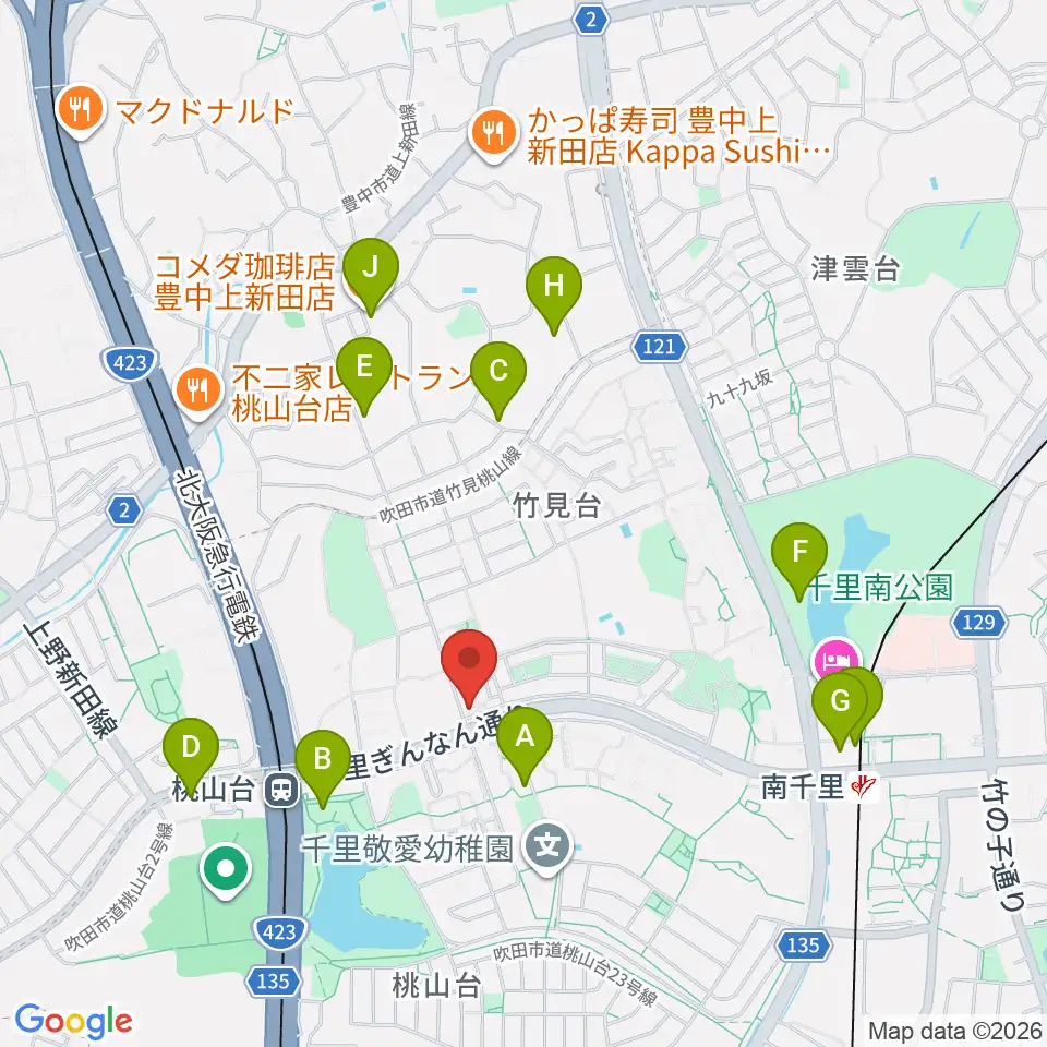 三木楽器 桃山台センター周辺のカフェ一覧地図