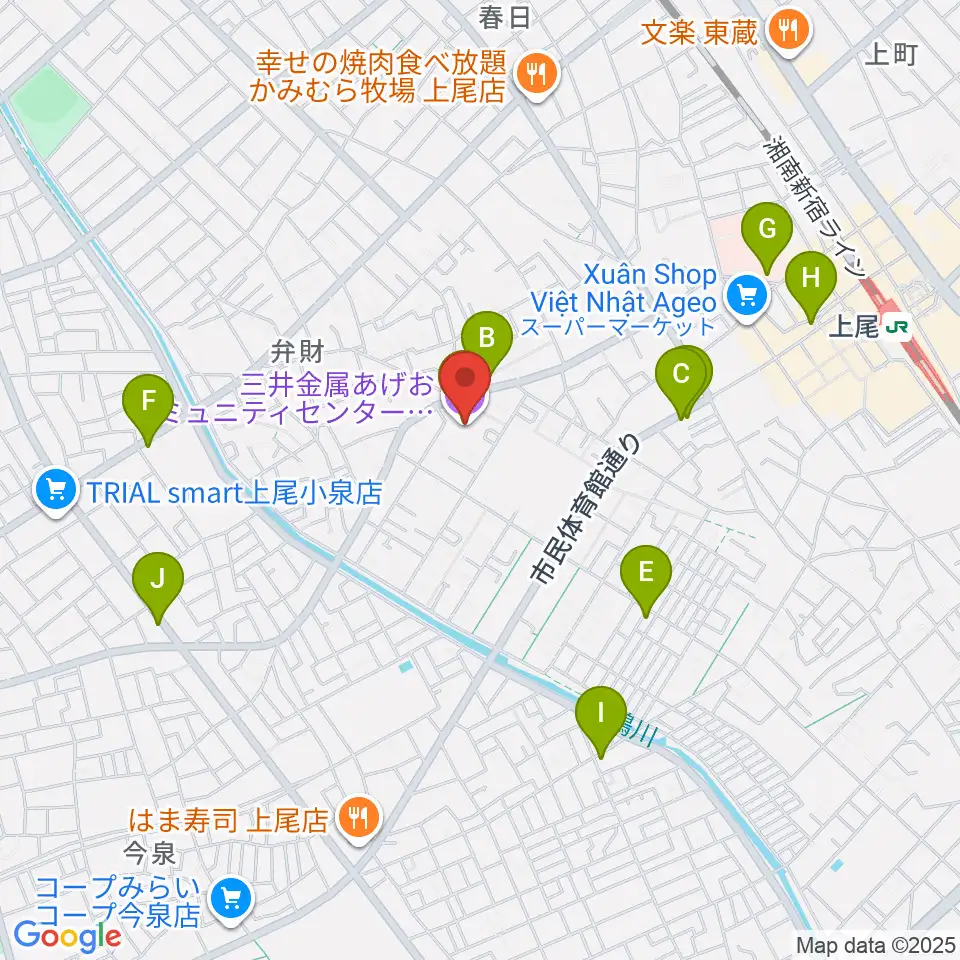 三井金属あげおコミュニティセンター周辺のカフェ一覧地図