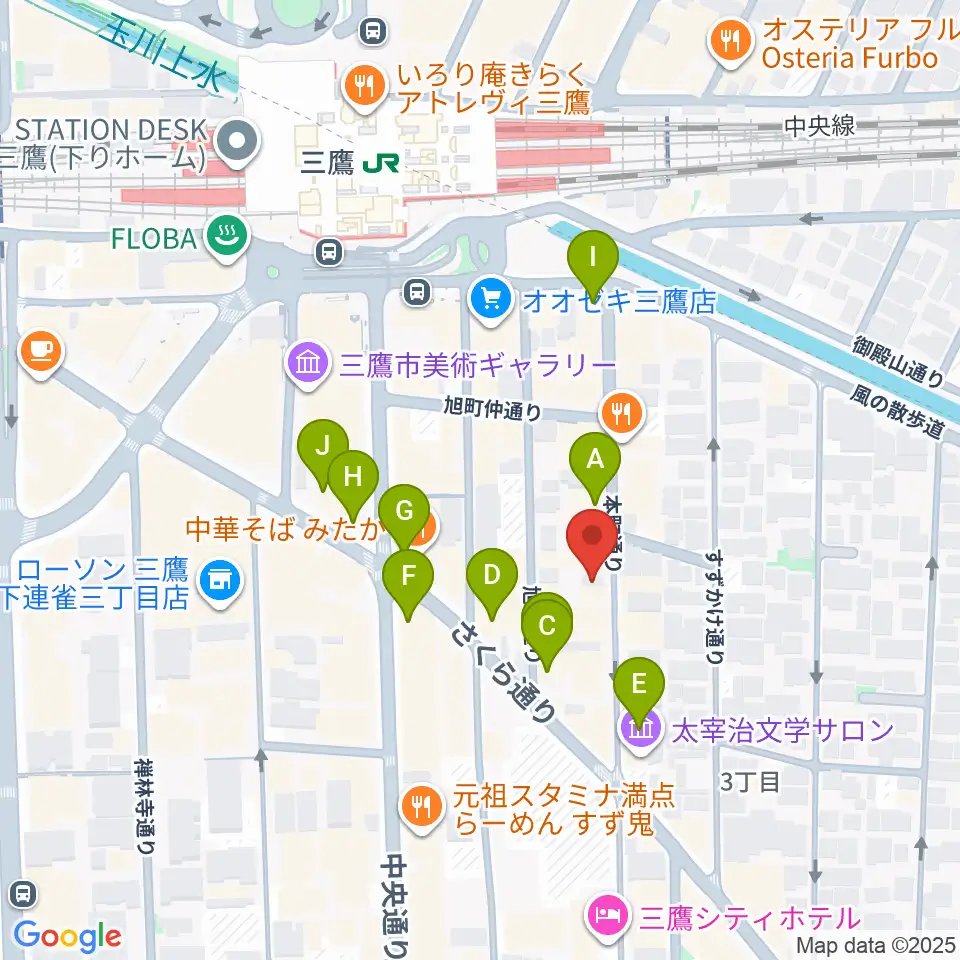 三鷹ブルームーン周辺のカフェ一覧地図