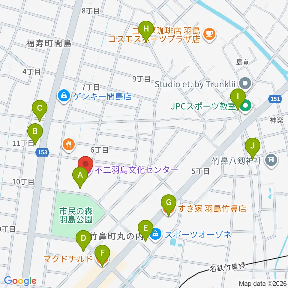 不二羽島文化センター周辺のカフェ一覧地図