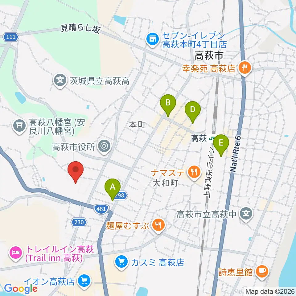 高萩市文化会館周辺のカフェ一覧地図