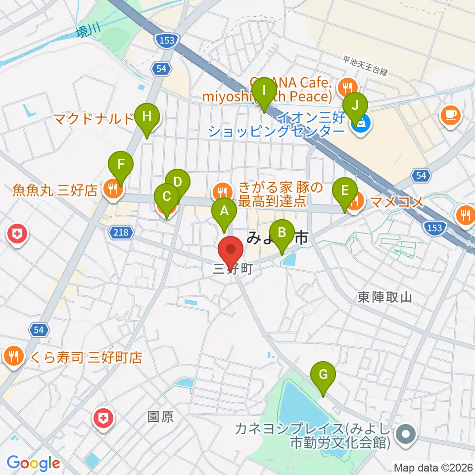 楽器晴海堂周辺のカフェ一覧地図