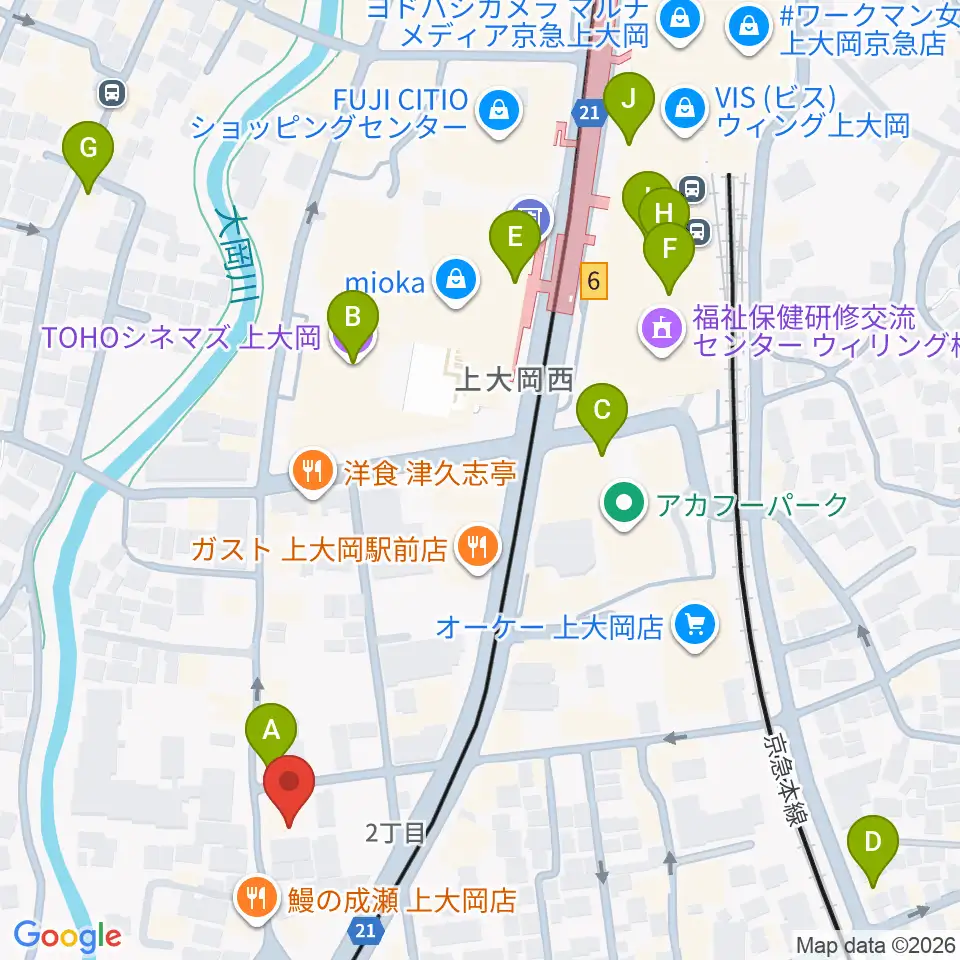 新堀ギター音楽院 上大岡教室周辺のカフェ一覧地図