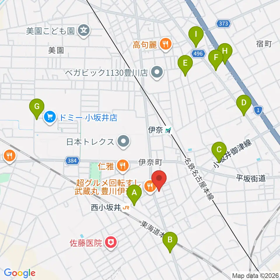 豊川市小坂井文化会館フロイデンホール周辺のカフェ一覧地図