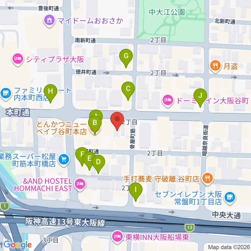 ムジークシューレ大阪周辺のカフェ一覧地図