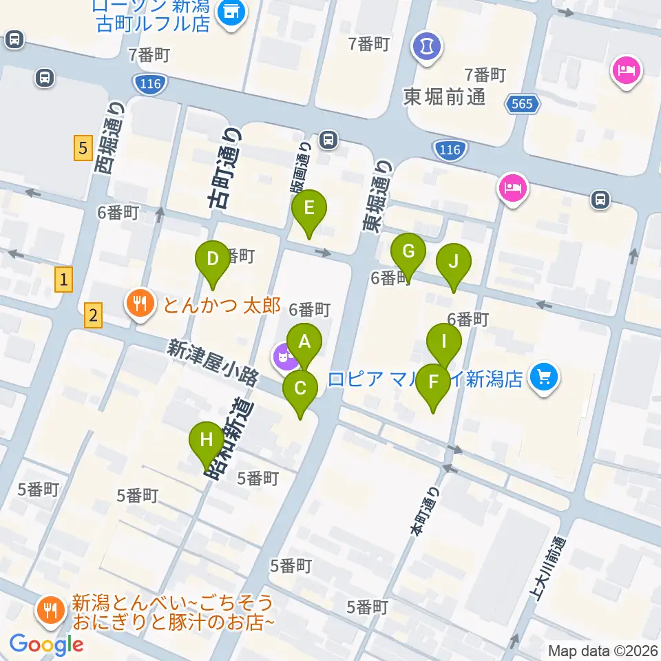 新潟古町えんとつシアター周辺のカフェ一覧地図