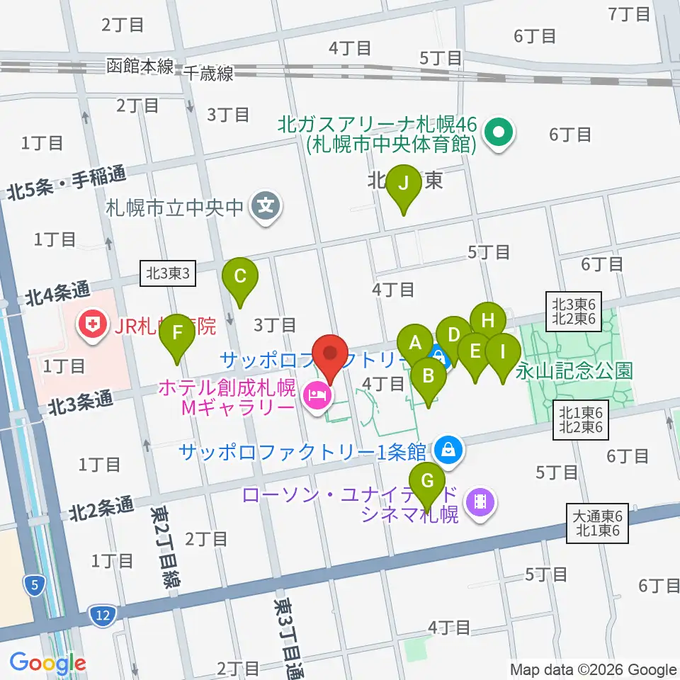 サッポロファクトリー周辺のカフェ一覧地図