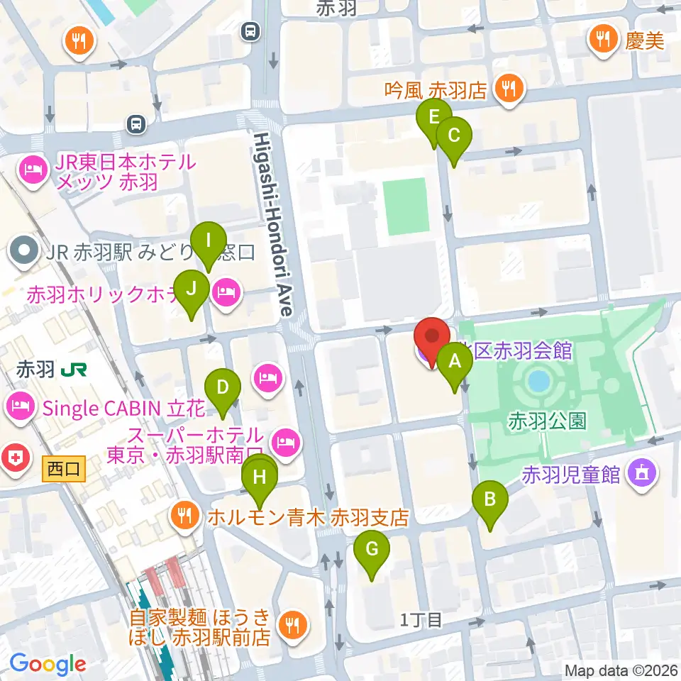赤羽会館周辺のカフェ一覧地図