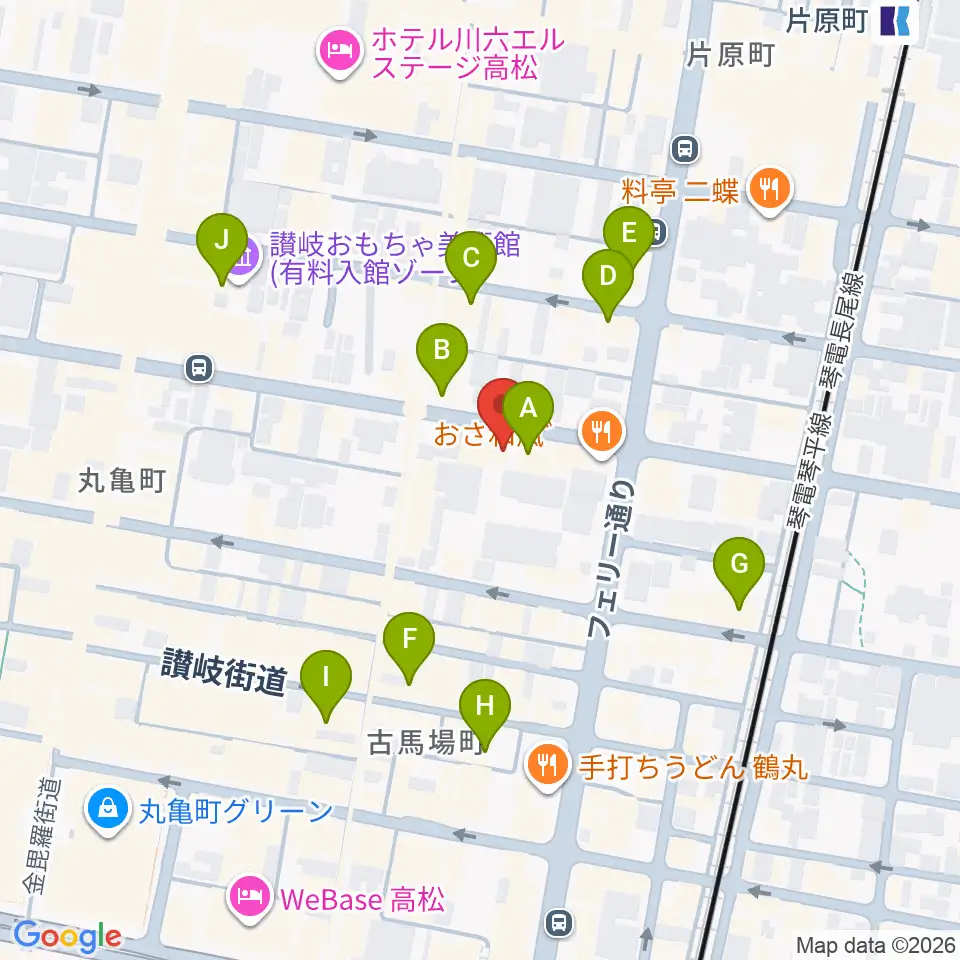高松スタジオナッシュビル周辺のカフェ一覧地図
