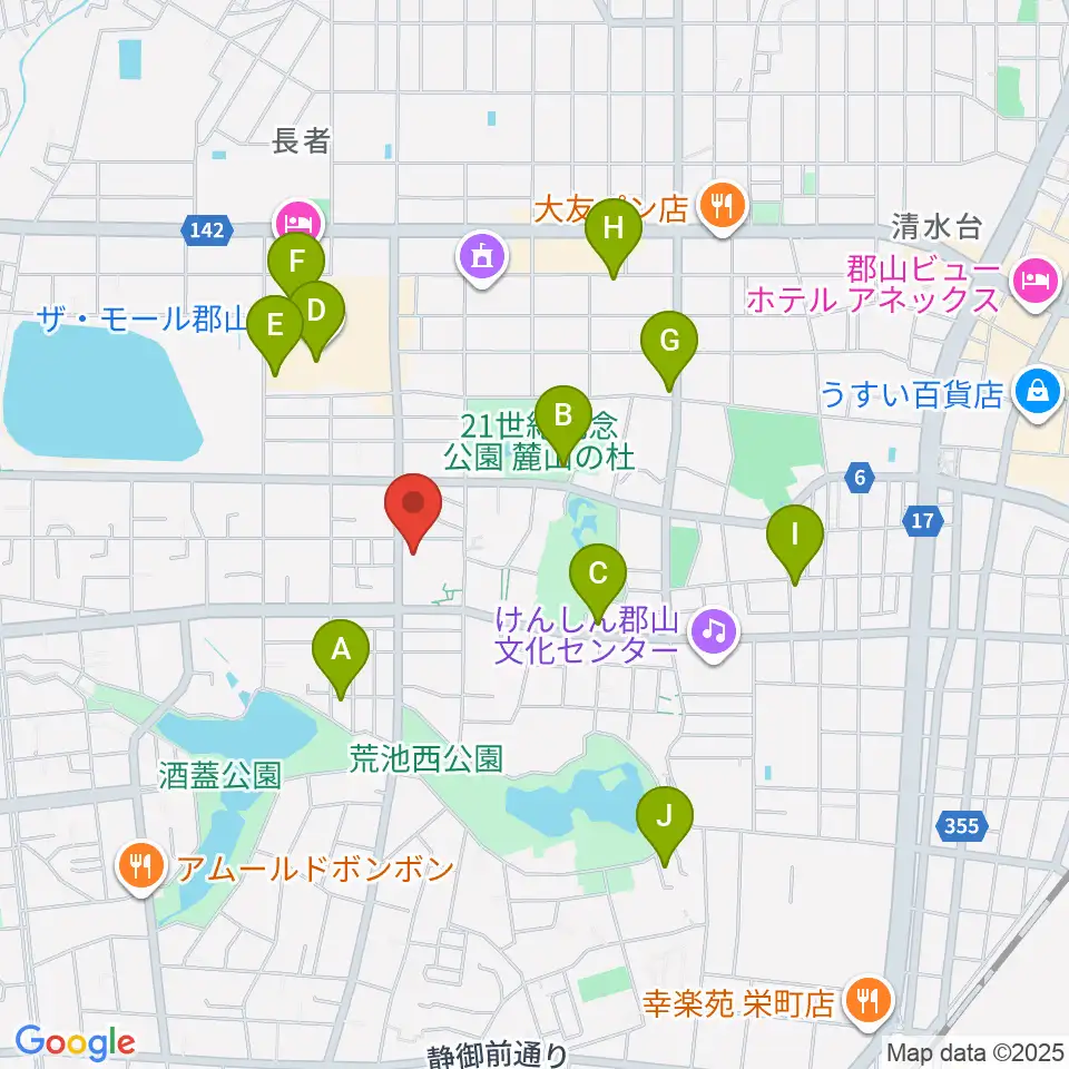 郡山市郡山公会堂周辺のカフェ一覧地図