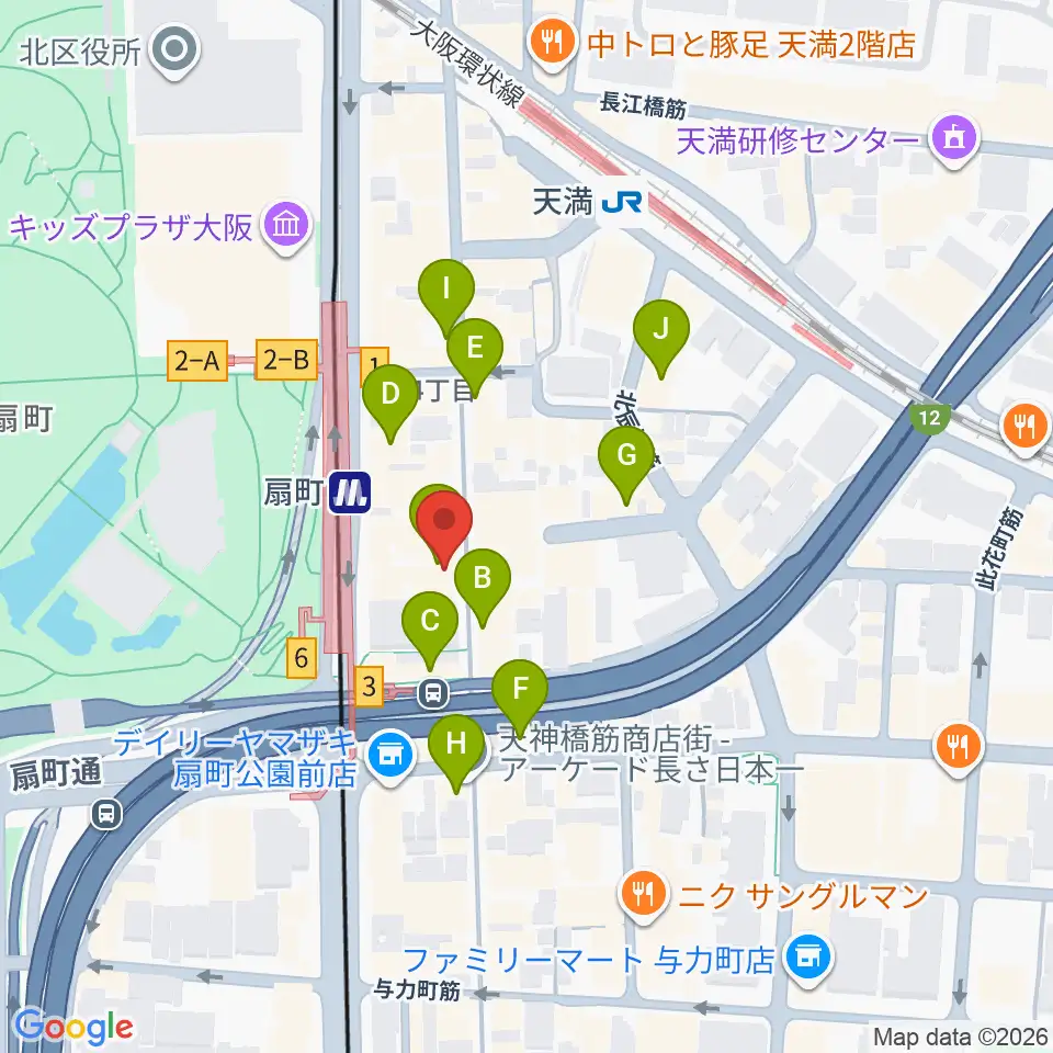 扇町para-dice周辺のカフェ一覧地図