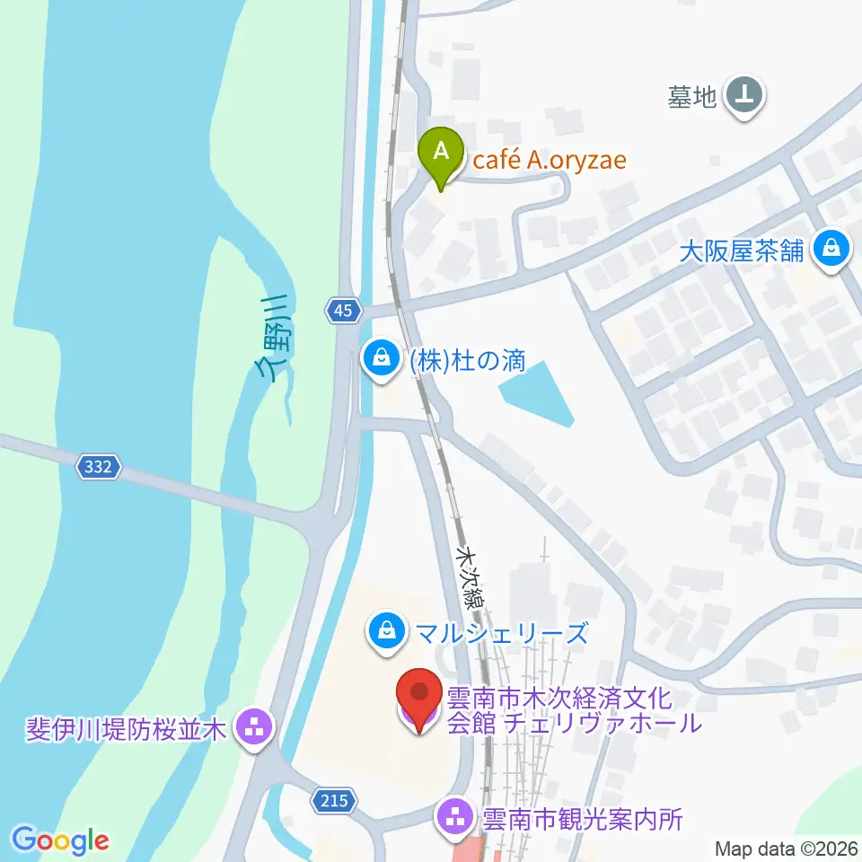 木次経済文化会館チェリヴァホール周辺のカフェ一覧地図