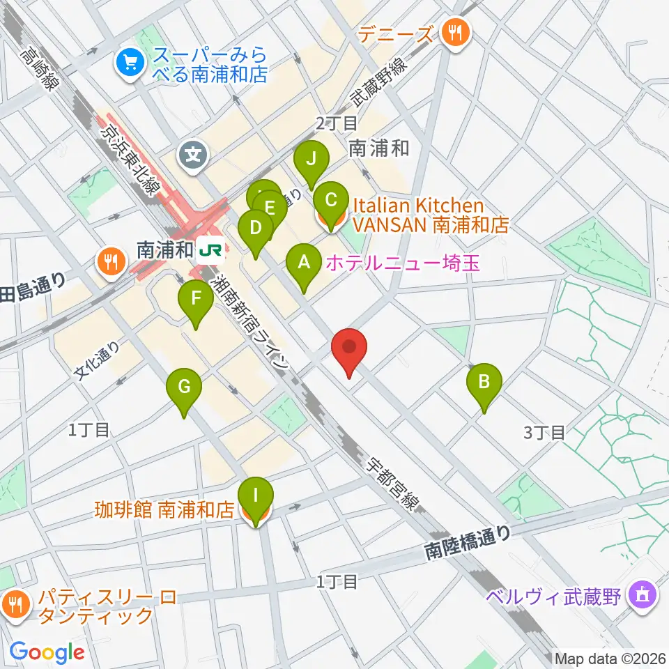 ミリオン楽器 南浦和店周辺のカフェ一覧地図