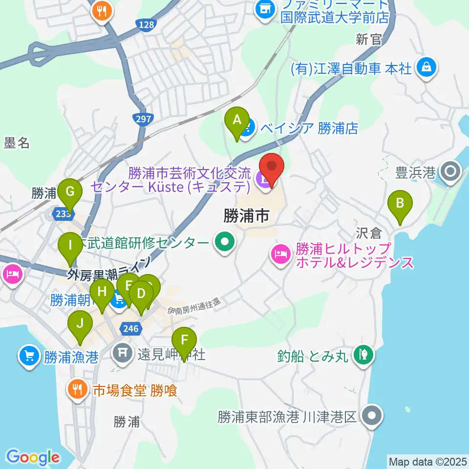 勝浦市芸術文化交流センター キュステ周辺のカフェ一覧地図