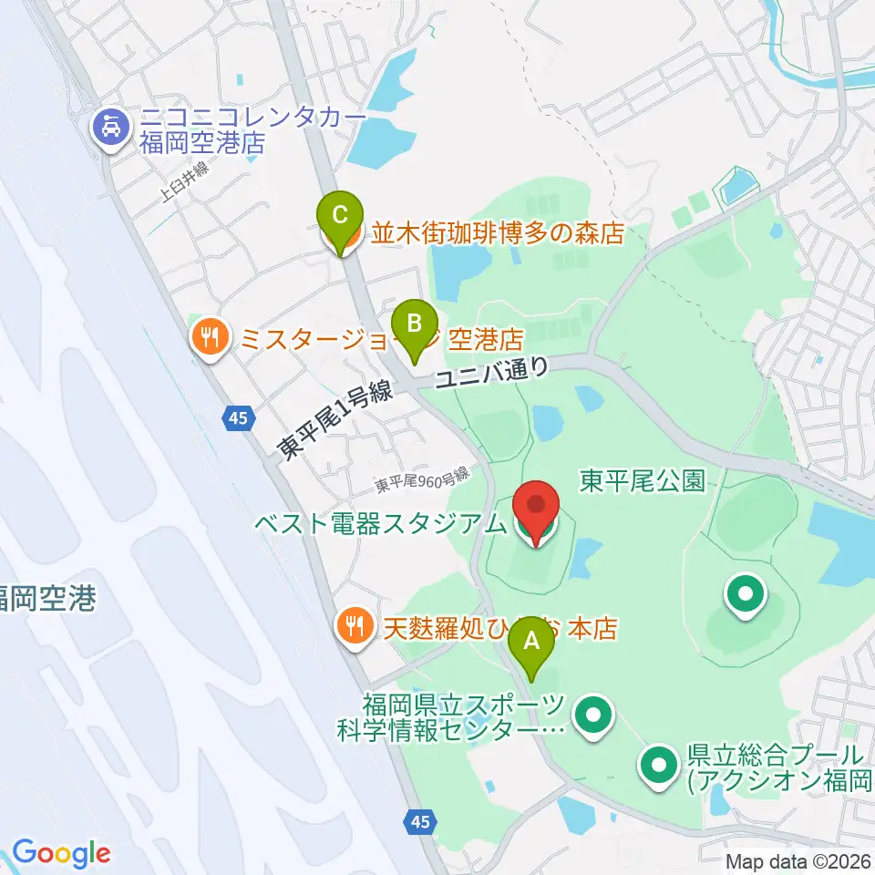 ベスト電器スタジアム周辺のカフェ一覧地図
