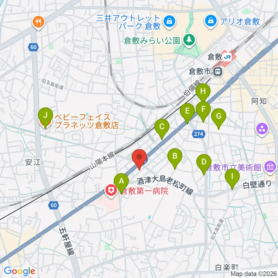 倉敷クッキージャー周辺のカフェ一覧地図