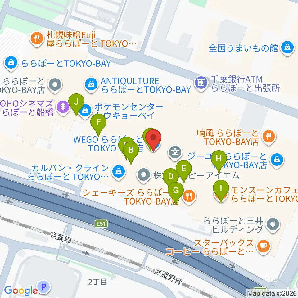 伊藤楽器 ららぽーとTOKYO-BAY店周辺のカフェ一覧地図