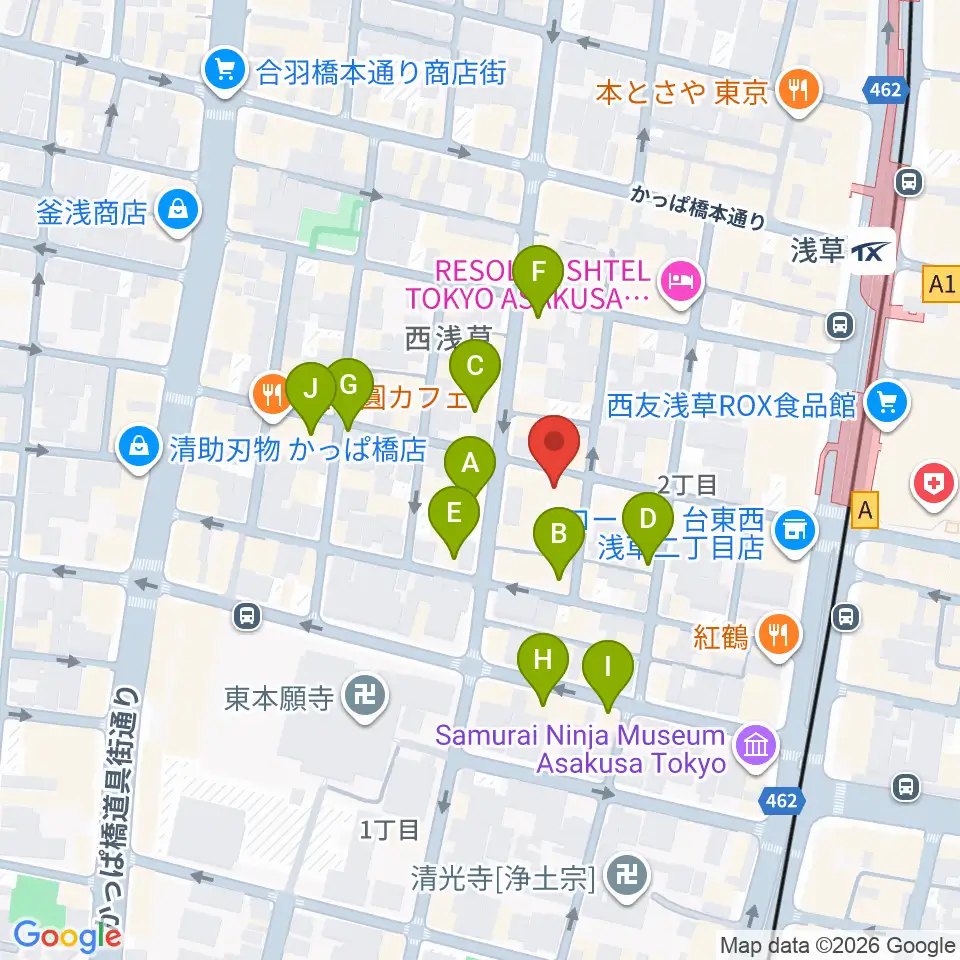 西浅草マルス周辺のカフェ一覧地図