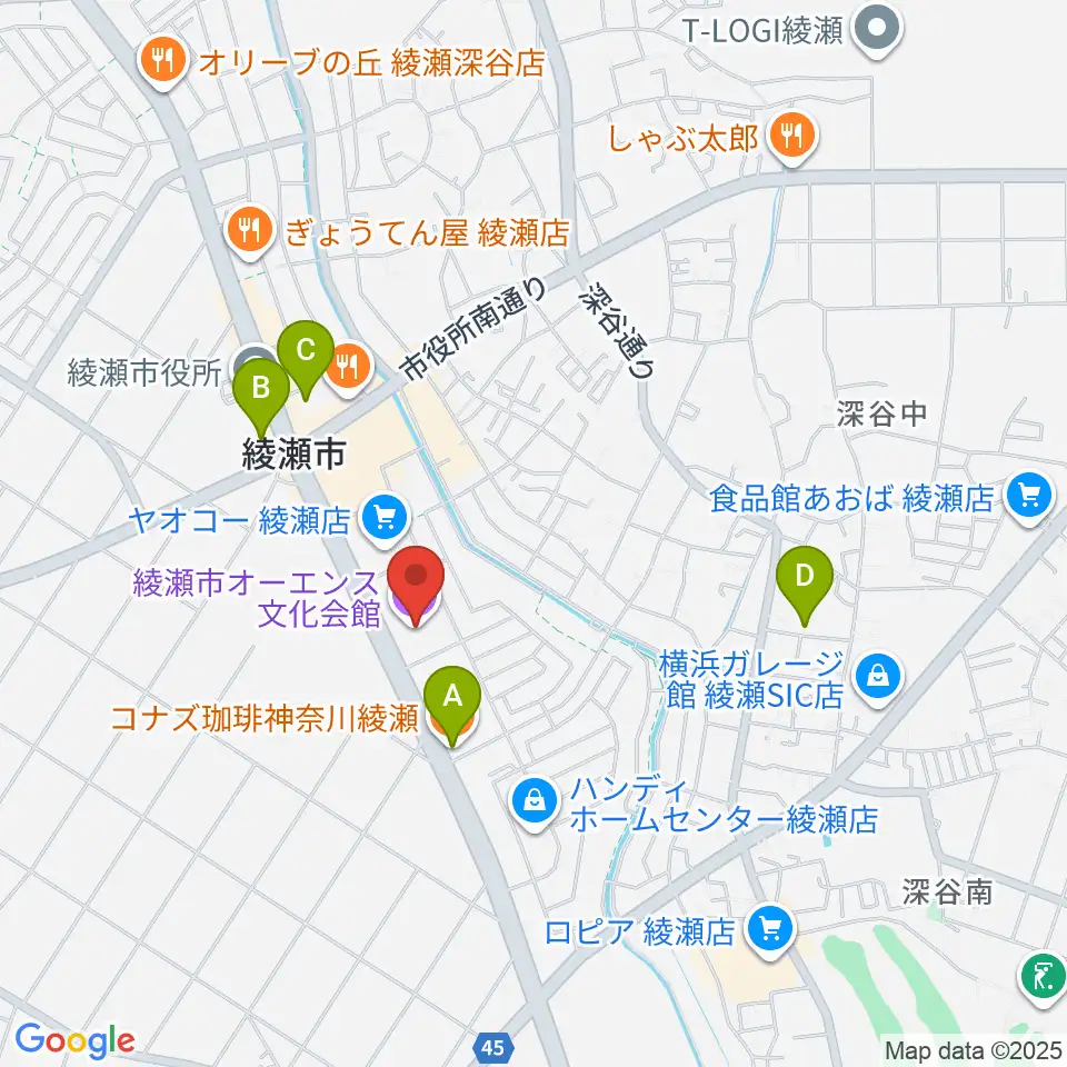 綾瀬市オーエンス文化会館周辺のカフェ一覧地図