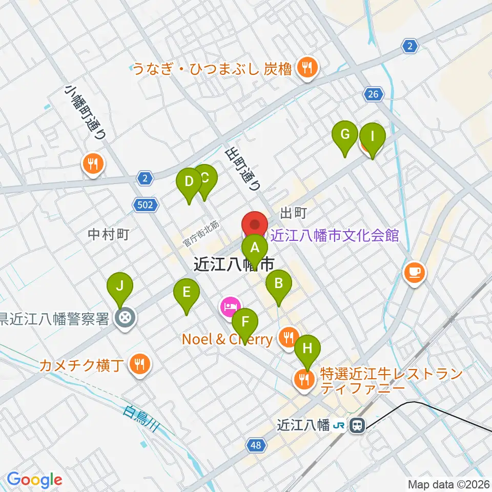 近江八幡市文化会館周辺のカフェ一覧地図