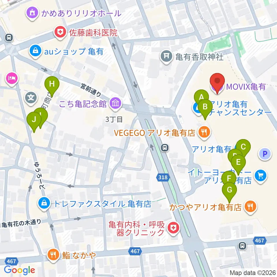 MOVIX亀有周辺のカフェ一覧地図
