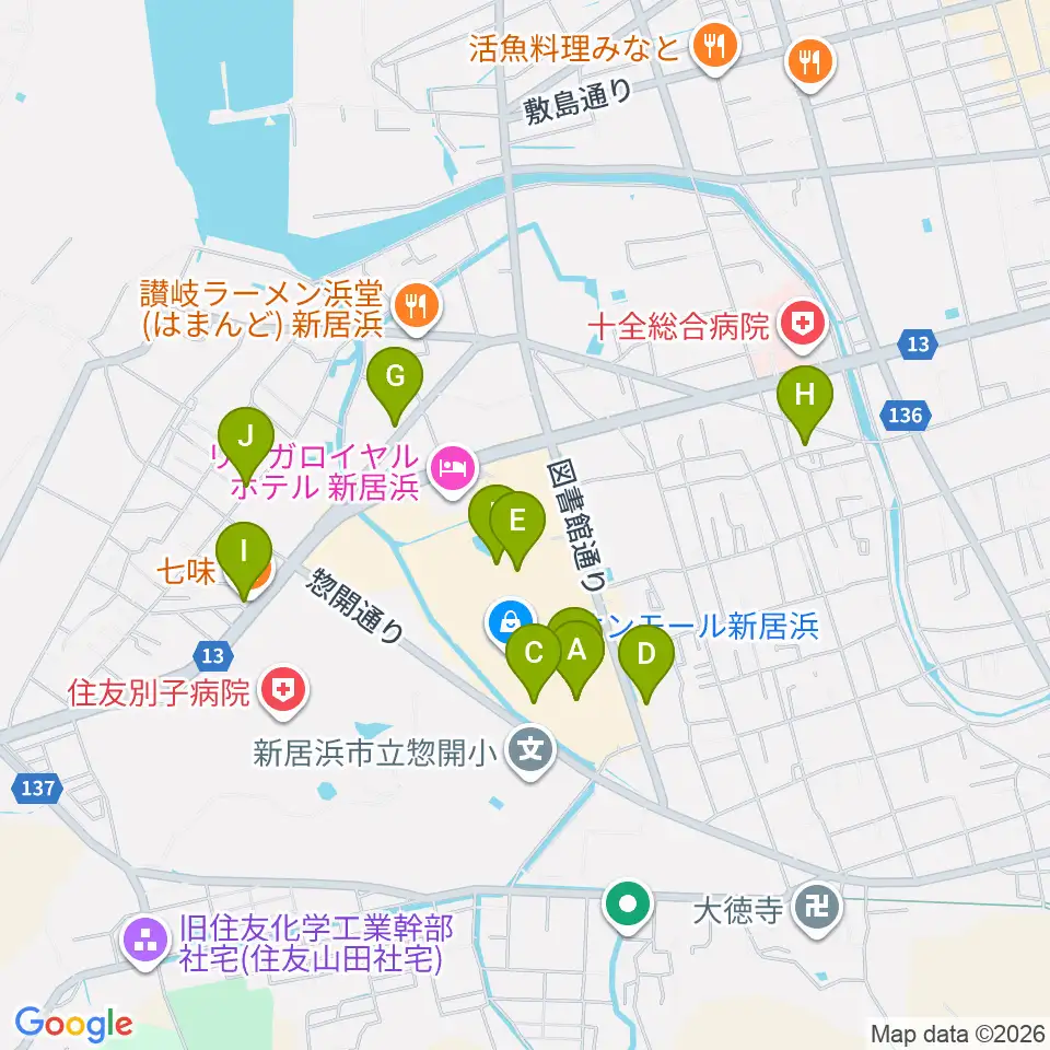 TOHOシネマズ新居浜周辺のカフェ一覧地図