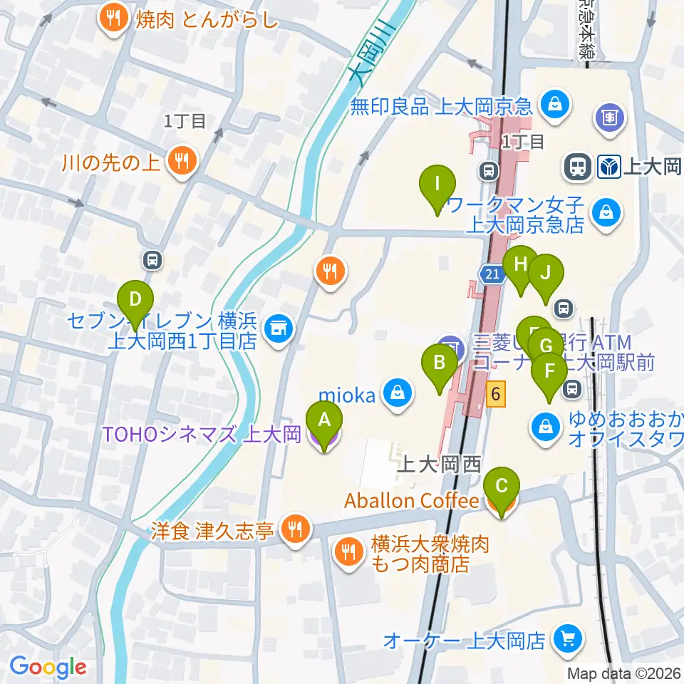 TOHOシネマズ上大岡周辺のカフェ一覧地図