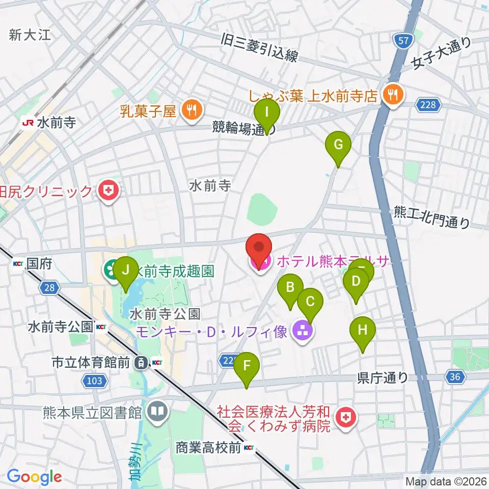 熊本テルサ テルサホール周辺のカフェ一覧地図