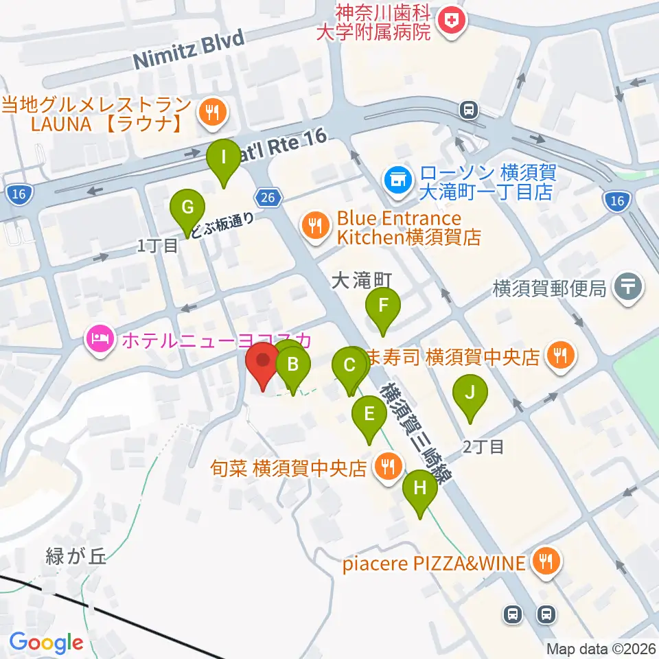 横須賀GIG acoustic周辺のカフェ一覧地図