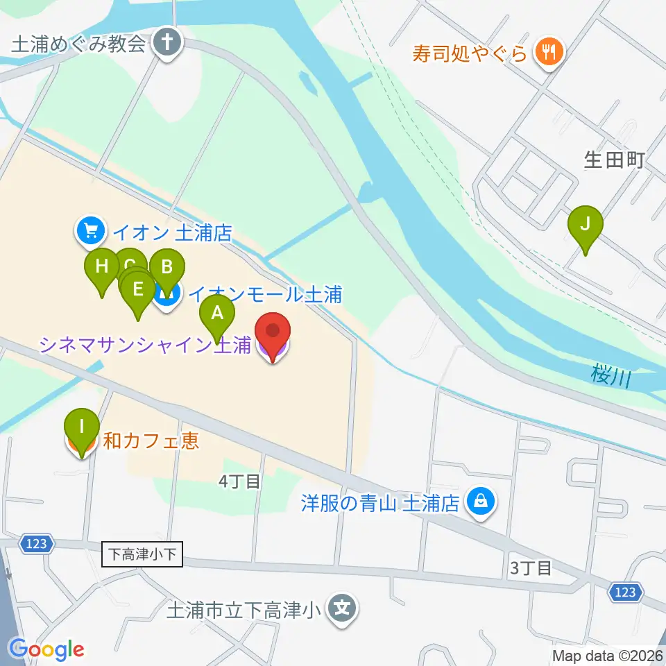 シネマサンシャイン土浦周辺のカフェ一覧地図