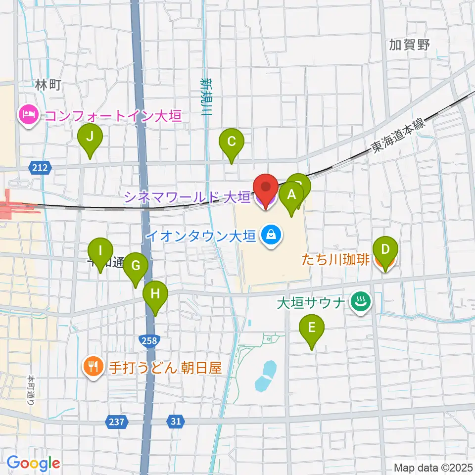 シネマワールド大垣周辺のカフェ一覧地図