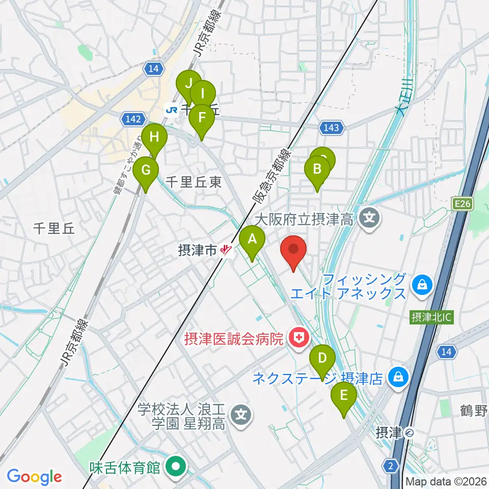 摂津市民文化ホール周辺のカフェ一覧地図