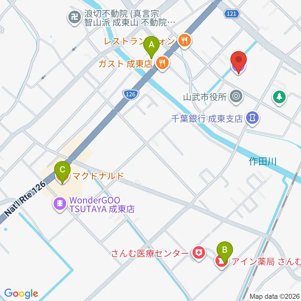 山武市成東文化会館のぎくプラザ周辺のカフェ一覧地図