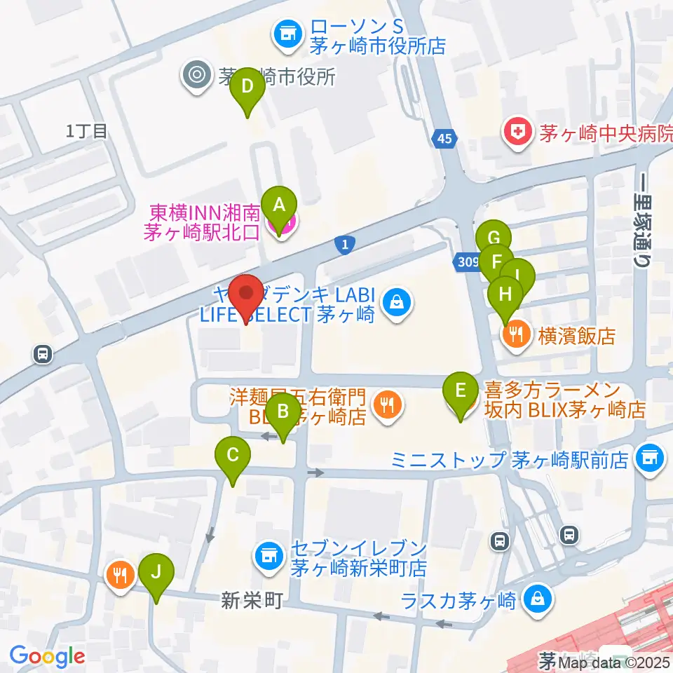 茅ヶ崎市勤労市民会館周辺のカフェ一覧地図