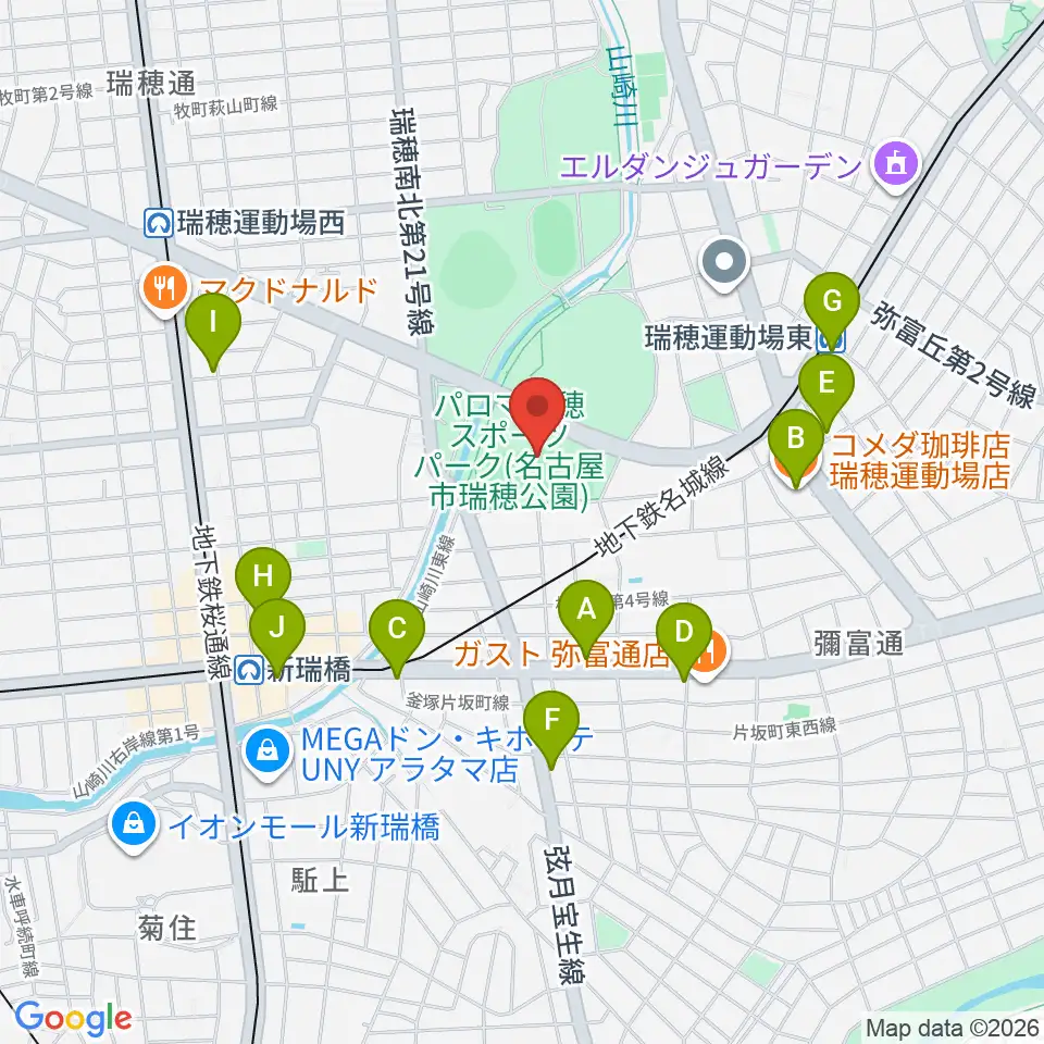 パロマ瑞穂ラグビー場周辺のカフェ一覧地図