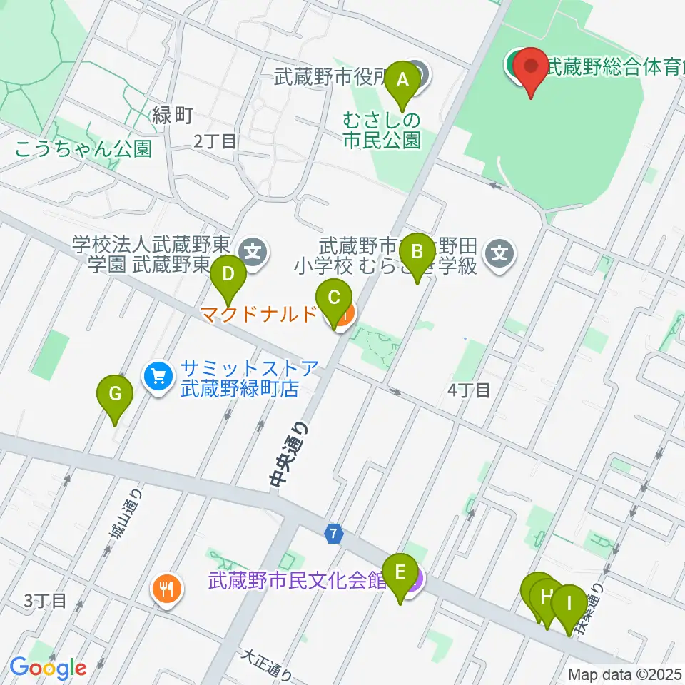 武蔵野陸上競技場周辺のカフェ一覧地図