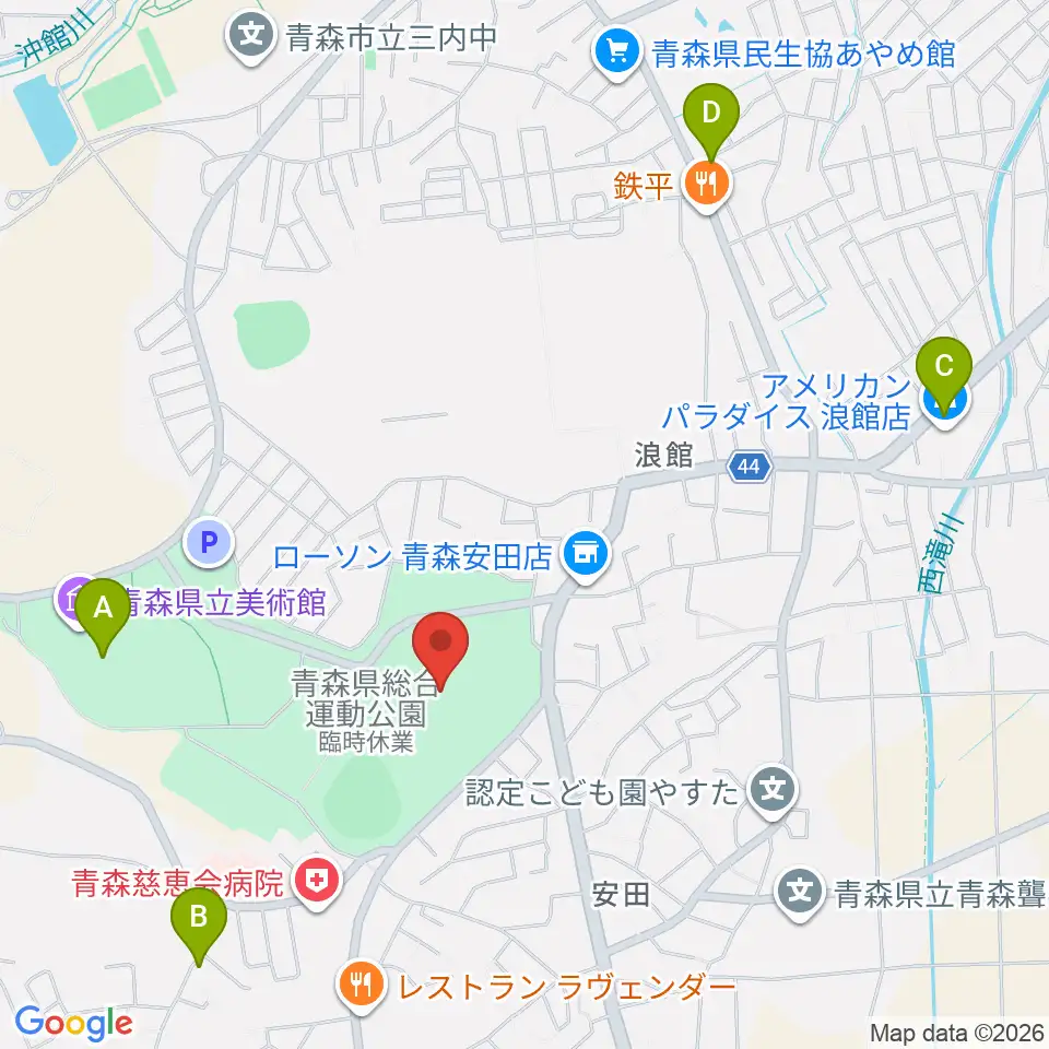 青森県総合運動公園 旧陸上競技場・旧補助競技場周辺のカフェ一覧地図
